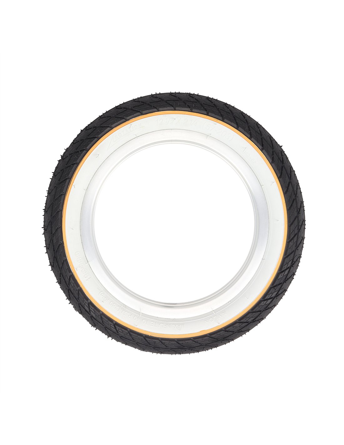 Tire 12-1/2" x 2-1/4" P-1193 Black/White Sidewall w/Yellow Line
